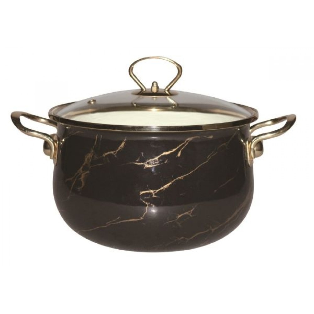 Кастрюля 5 л эмалированная со стекл. кр., ручка золото; цвет: чёрный мрамор
