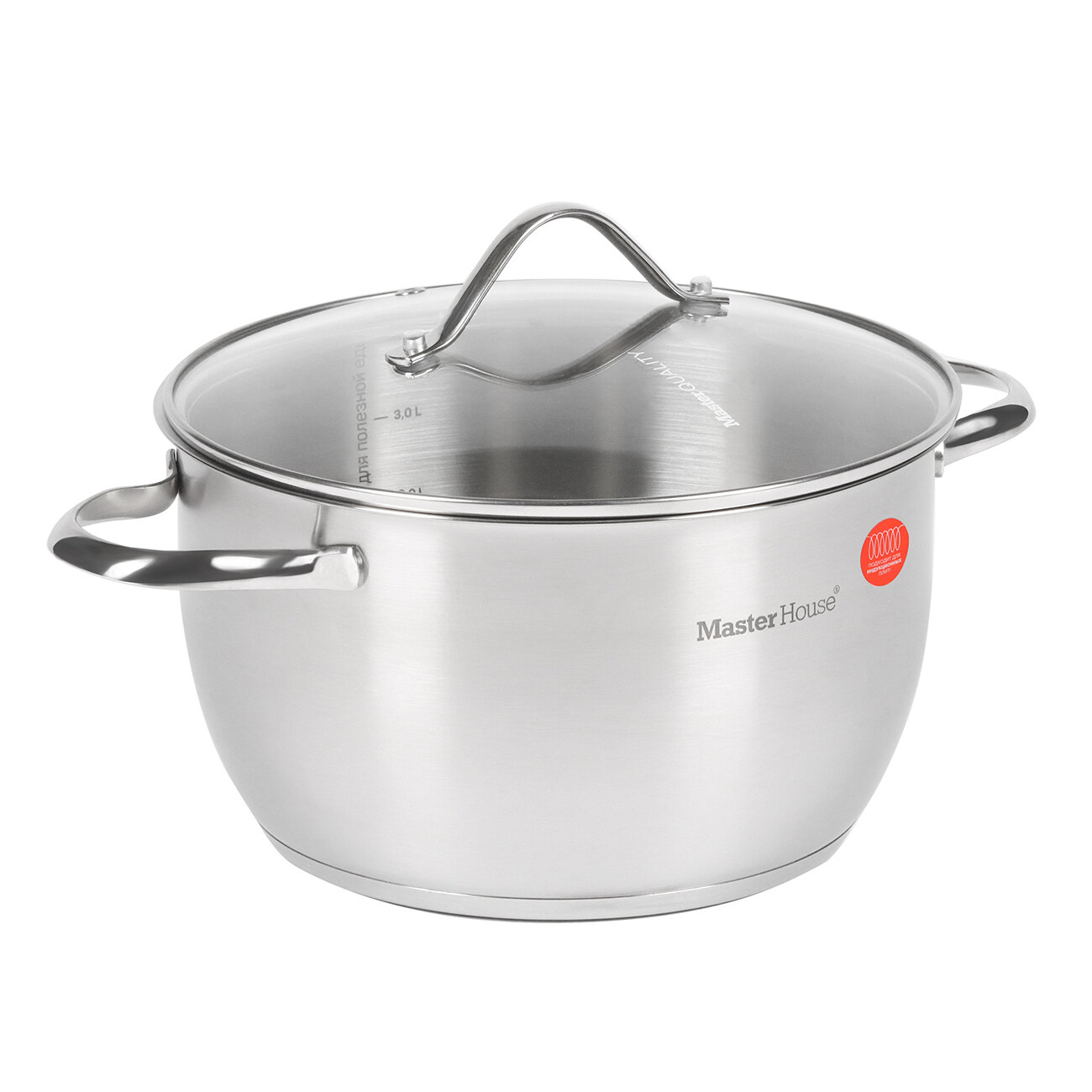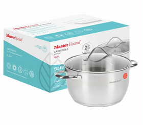 Кастрюля объемом 4,2 л выполнена из нержавеющей стали марки 18/10 — в сплав добавлены хром и никель. Это сочетание придает металлу повышенную прочность и устойчивость к коррозии. Толщина стенок — 0,5 мм.