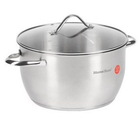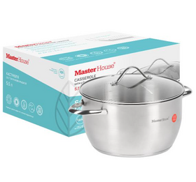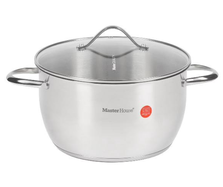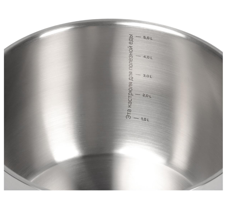 Кастрюля объемом 5,5 л выполнена из нержавеющей стали марки 18/10 — в сплав добавлены хром и никель. Это сочетание придает металлу повышенную прочность и устойчивость к коррозии. Толщина стенок — 0,5 мм.