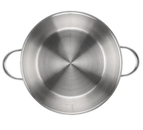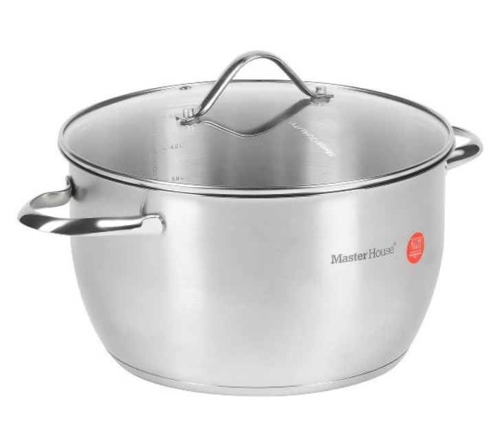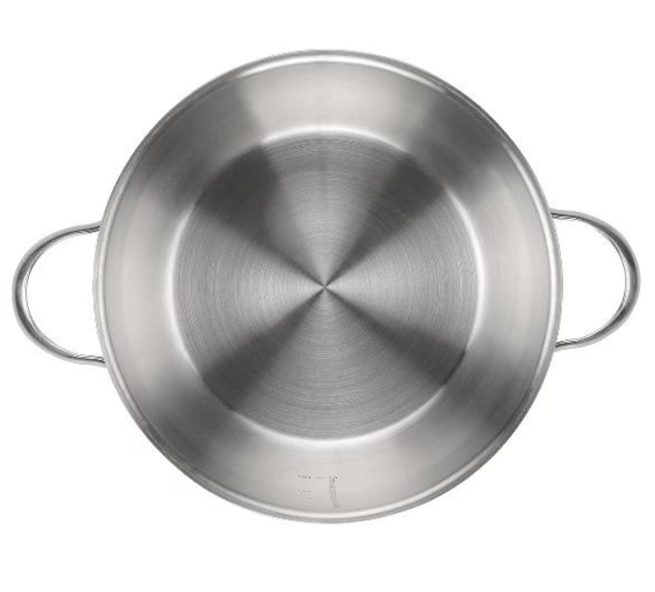 Дно капсулированное, дополнительно усилено слоем алюминия толщиной 2 мм. Оно быстро и равномерно прогревается. На внутреннюю поверхность нанесена мерная шкала. Кастрюля поставляется с крышкой из закаленного стекла, снабженной стальным ободком. В крышке есть отверстие для выхода пара.