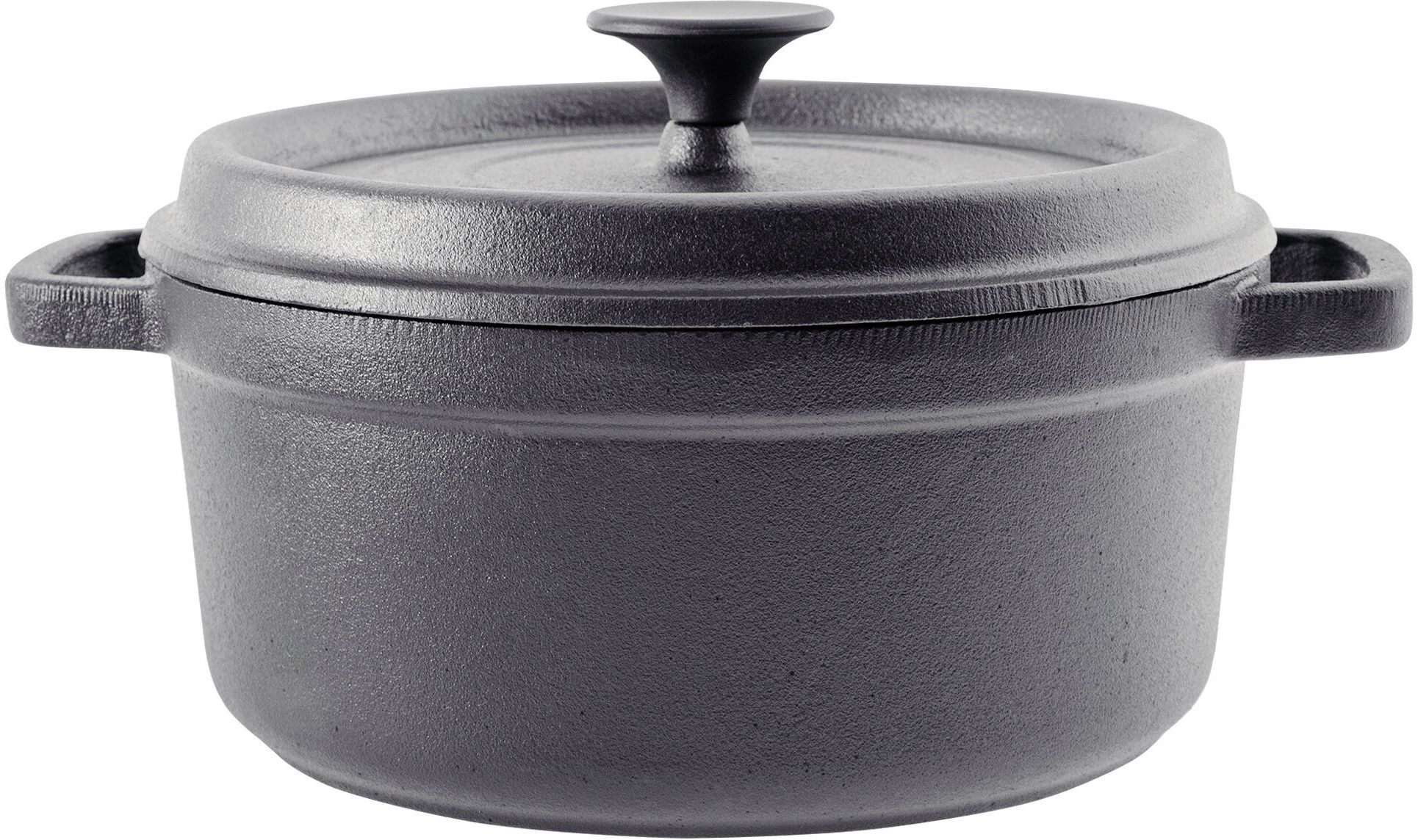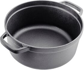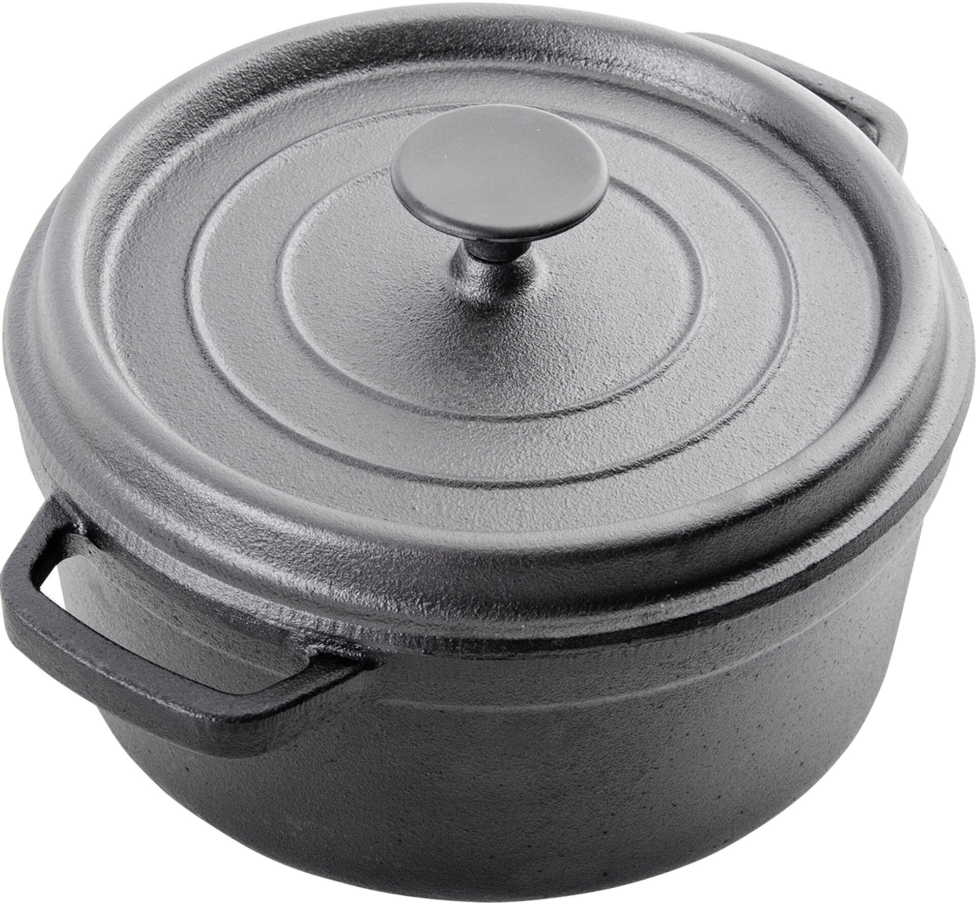 Кастрюля изготовлена из чугуна, традиционного высокопрочного и экологически чистого материала.