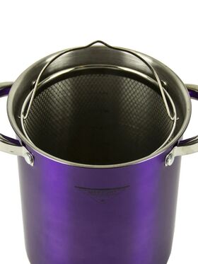Материал: высококачественная нержавеющая сталь 18/10. Объем: 4,3 л (16*21 см). Толщина стенок кастрюли 0,5 мм. Крепкие ручки. Стальная сетка-пароварка 14*19 см. Крышка из закаленного стекла со стальным ободком с отверстием для выпуска пара. Термоаккумулирующее дно. Мерная шкала. Можно мыть в посудомоечной машине. Подходит для всех видов плит, включая индукцию.