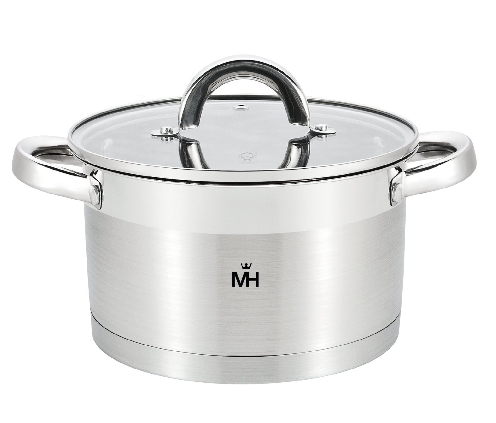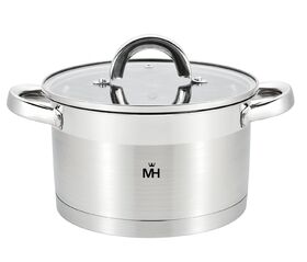 ОписаниеКастрюля с крышкой 22*12,5 см / 4,3 л, Высококачественная нержавеющая сталь 18/10, Толщина стенок 0,5 мм, Термоаккумулирующее дно 2,5 мм, Крышка из закалённого стекла