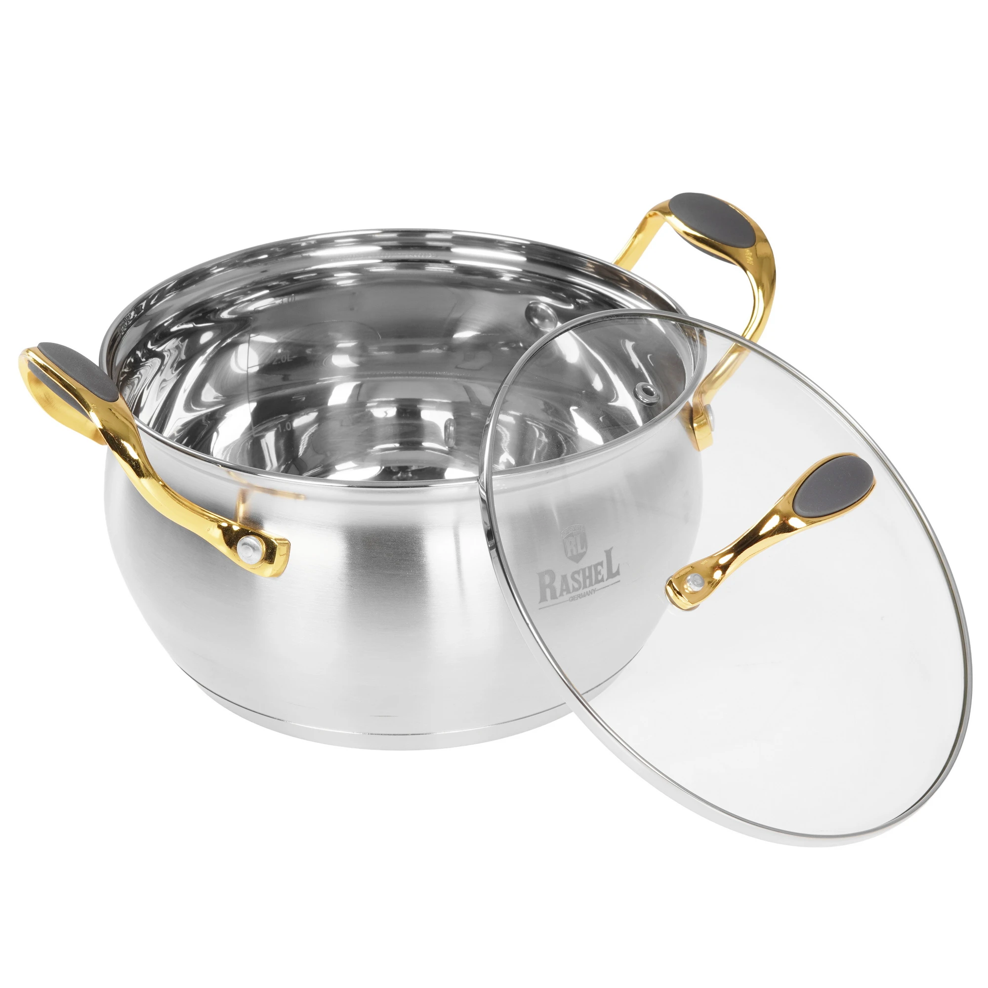 - Ручки из нержавеющей стали в цвет золота;