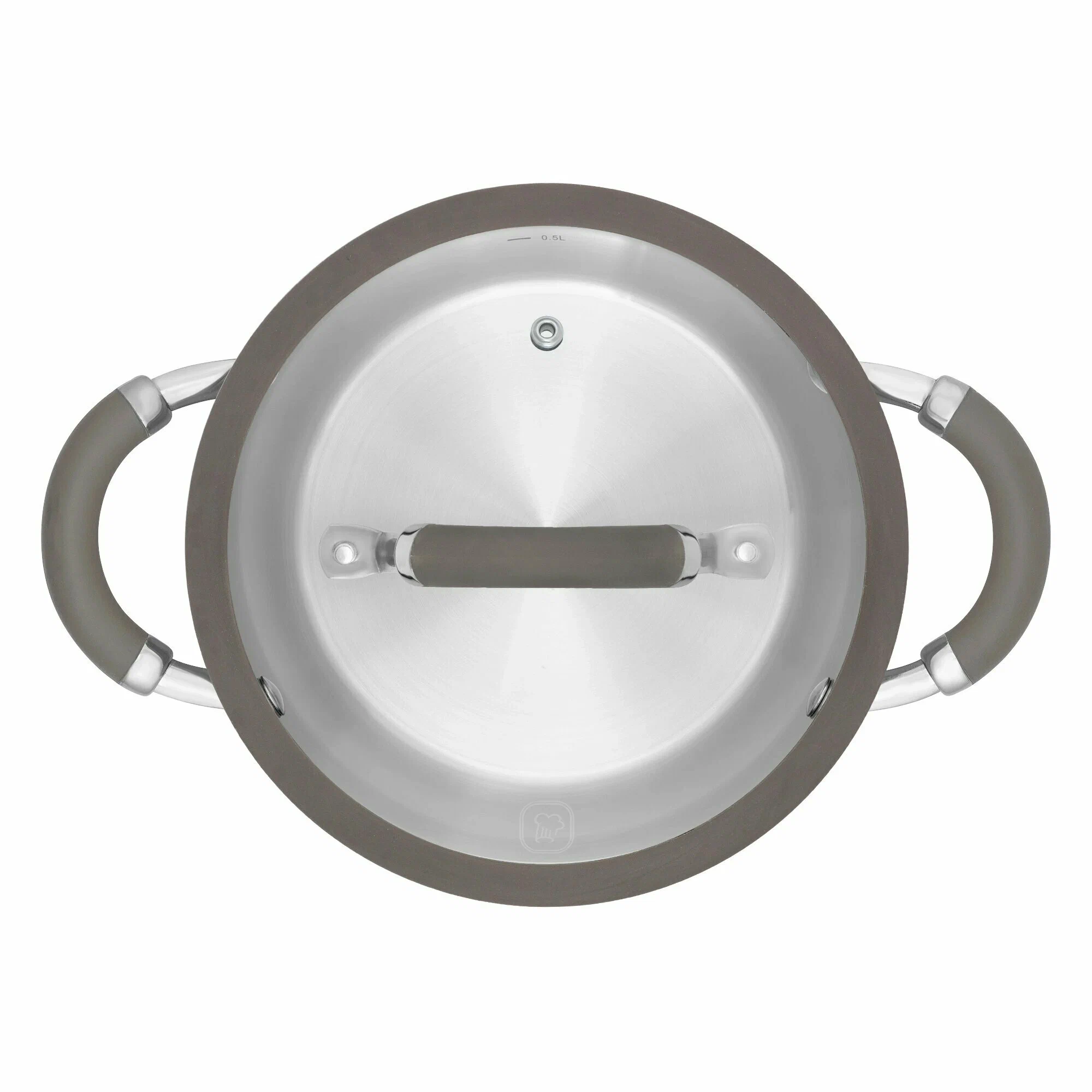 многослойное дно; мерная шкала; материал крышки: стекло; материал ручек: сталь с силиконовым покрытием