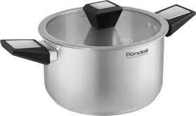 Технология: тройное вштампованное, а затем вплавленное дно без воздушных полостей. Аксессуары: cтильные бакелитовые ручки со стальными вставками. Преимущества: эргономичная форма ручек; Плоская крышка из термостойкого стекла с паровыпуском и широким металлическим ободом.