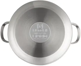 технология: тройное вштампованное, а затем вплавленное дно без воздушных полостей; тип крепления аксессуаров: клепочное