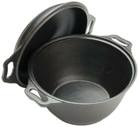 материал крышки: чугун; материал ручек: чугун; крышку можно использовать как сковороду