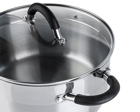Кастрюля выполнена из нержавеющей стали - 18/10. Капсулированное дно.