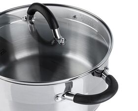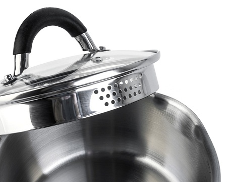 Форма края кастрюли предусматривает желобок для удобного слива жидкости.