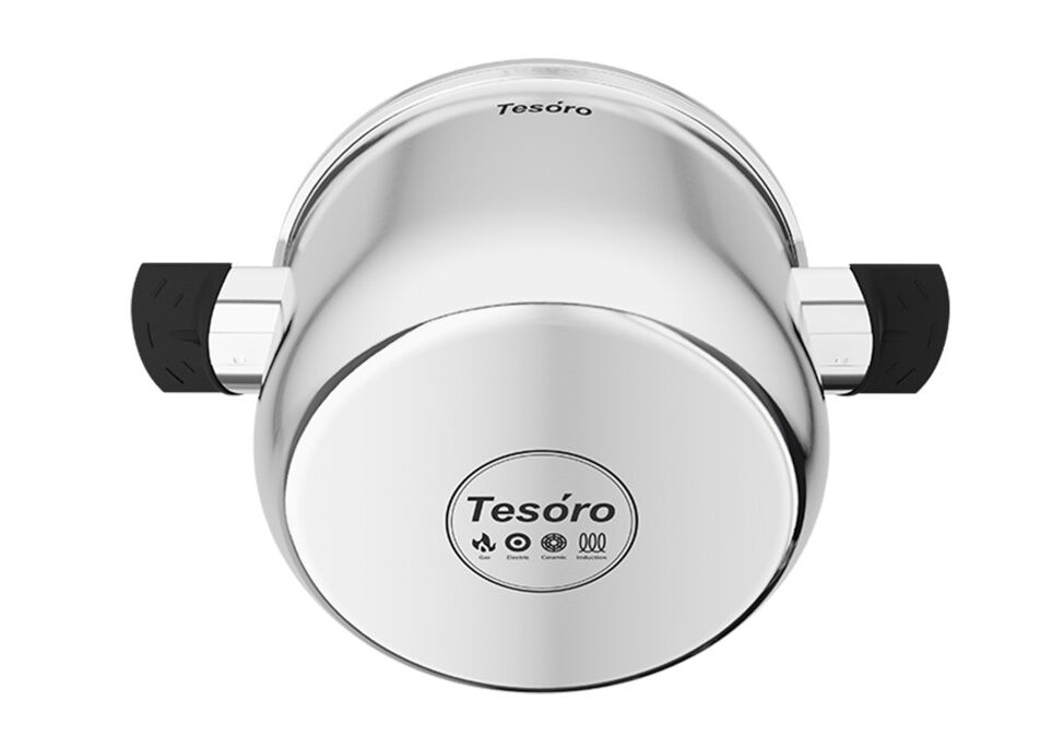 Наружный слой – коррозионностойкая (нержавеющая) сталь марки 430 с магнитопроводящими свойствами, что позволяет использовать посуду для приготовления на индукционных плитах.