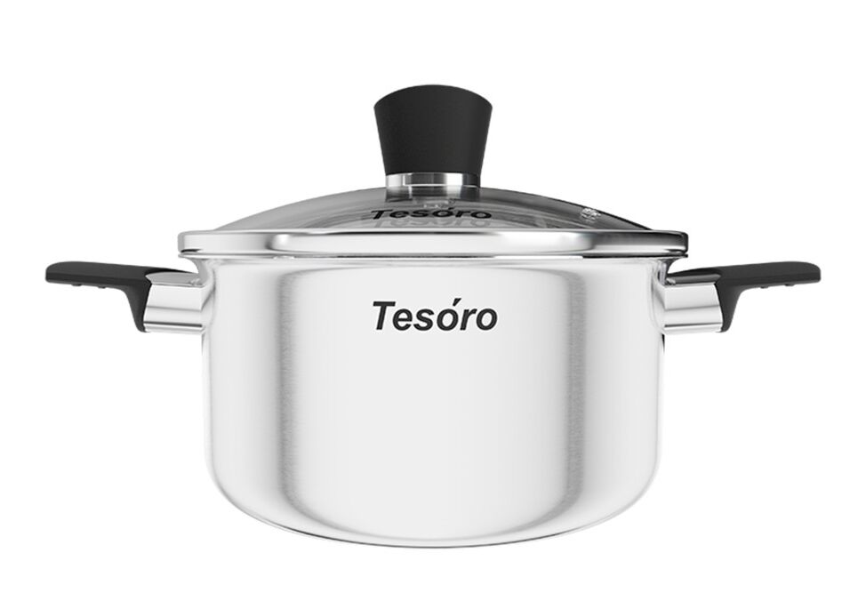 Наружный слой – коррозионностойкая (нержавеющая) сталь марки 430 с магнитопроводящими свойствами, что позволяет использовать посуду для приготовления на индукционных плитах.