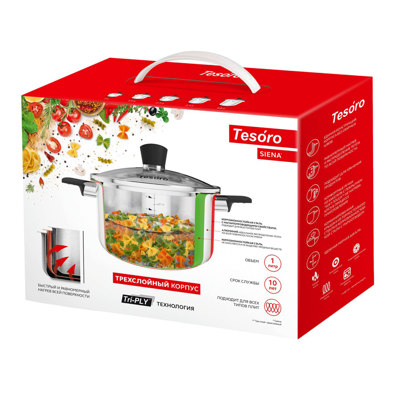 Наружный слой – коррозионностойкая (нержавеющая) сталь марки 430 с магнитопроводящими свойствами, что позволяет использовать посуду для приготовления на индукционных плитах.