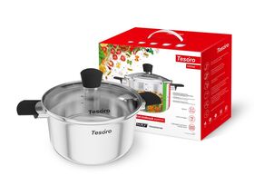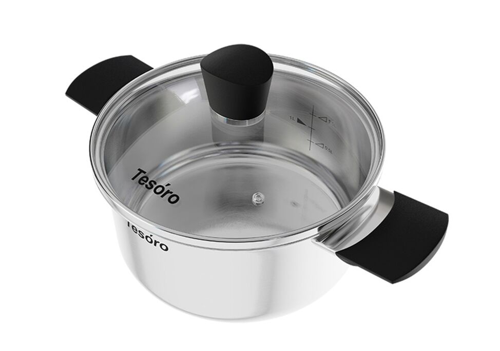 Комбинированная крышка из термостойкого стекла и коррозионностойкой стали оснащена отверстием для выпуска пара.