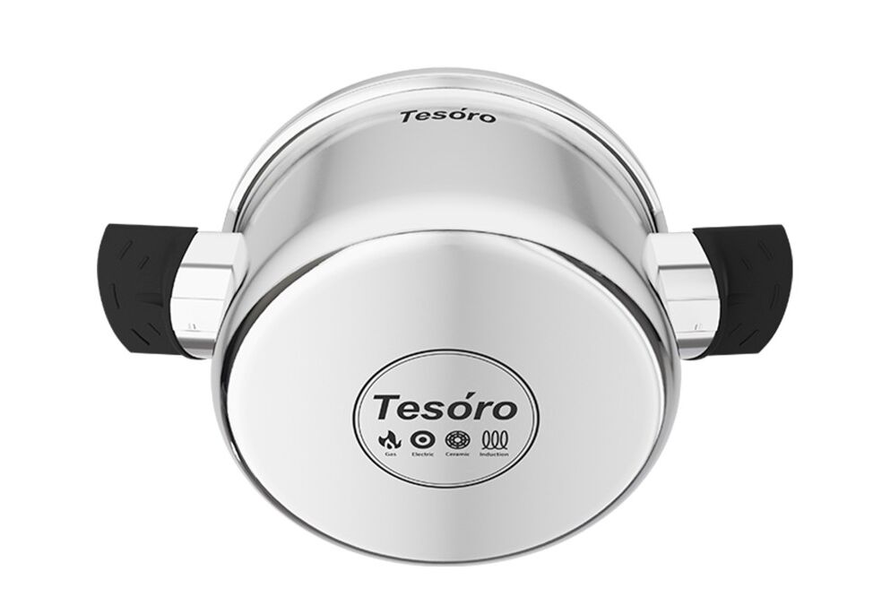 Наружный слой – коррозионностойкая (нержавеющая) сталь марки 430 с магнитопроводящими свойствами, что позволяет использовать посуду для приготовления на индукционных плитах.