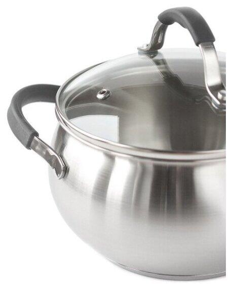 многослойное дно; мерная шкала: есть; материал крышки: стекло; материал ручек: сталь; теплоизолирующее покрытие
