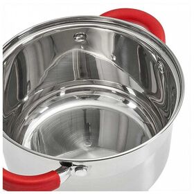 Кастрюля подходит для приготовления блюд на газовых, чугунных, галогеновых, стеклокерамических и индукционных конфорках. Модель оснащена корпусом из металла с антикоррозийными свойствами, термосберегающим капсульным дном и ручками с покрытием из бакелита. В комплект входит крышка с клапаном для выпуска пара. Допустима мойка в посудомоечной машине. Полезный объем составляет 2,2 л. Изделие выполнено в серебристом цвете.