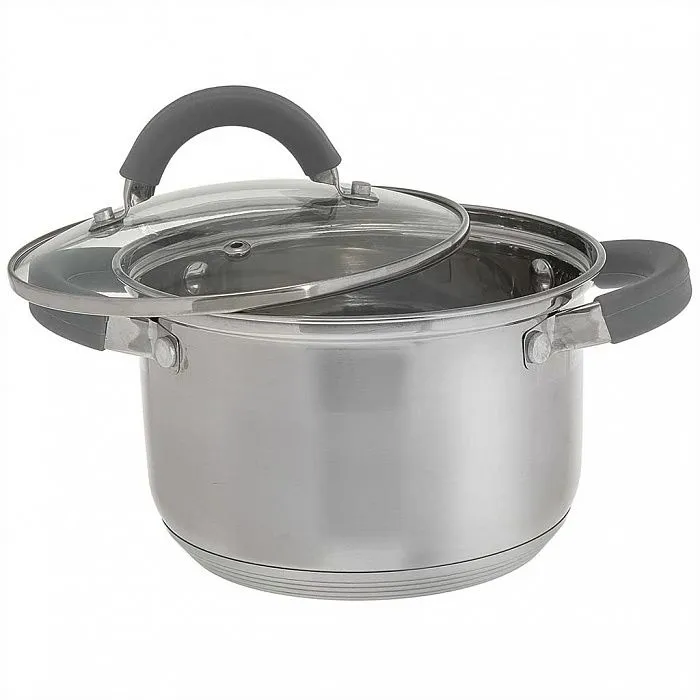 Кастрюля подходит для приготовления блюд на газовых, чугунных, галогеновых, стеклокерамических и индукционных конфорках. Модель оснащена корпусом из металла с антикоррозийными свойствами, термосберегающим капсульным дном и ручками с покрытием из бакелита. В комплект входит крышка с клапаном для выпуска пара. Допустима мойка в посудомоечной машине. Полезный объем составляет 2,2 л. Изделие выполнено в серебристом цвете.