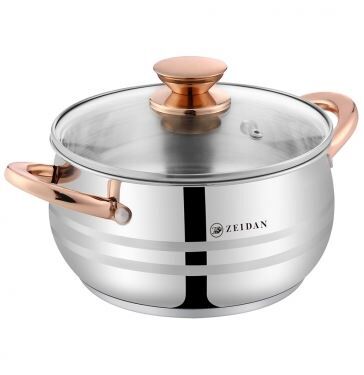Кастрюля ZEIDAN Z-501071 6.1 л со стеклянной крышкой, нержавеющая сталь, 3-x СЛОЙНОЕ КАПСУЛИРОВАННОЕ ИНДУКЦИОННОЕ ДНО, крышка - стекло, ручки на корпусе и крышке "ПОД ЗОЛОТО", комбинированная полировка снаружи, матовая полировка внутри. Подарочная упаковка.