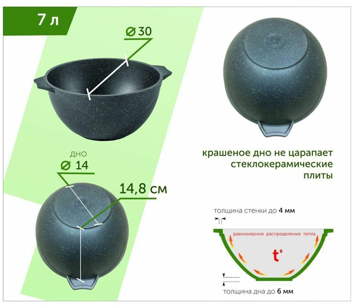 Благодаря термоаккумулирующим свойствам пища не пригорает.