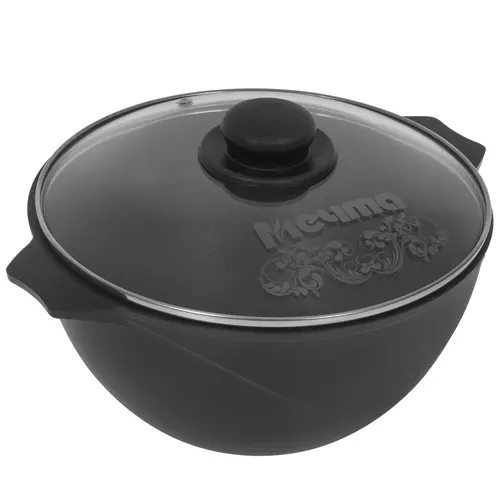 Казан Мечта Престиж объемом 4 л выполнен в толстостенном литом корпусе из алюминия. Это удобная и надежная посуда для приготовления традиционных блюд на открытом огне. Плов в таком чане получится рассыпчатым, картофель с мясом обретает особенный аромат и вкус, а супы получатся особенно наваристыми. Кроме того, казан подходит для газовых, стеклокерамических и электрических плит.