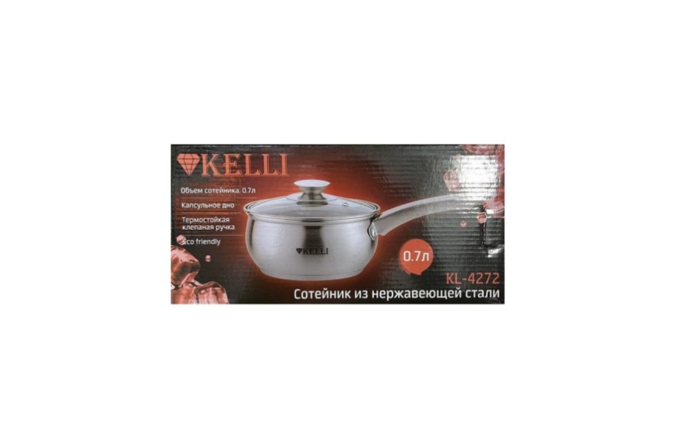 Сотейник-ковш представлен в серебристом корпусе из нержавеющей стали, что обусловливает надежность и долговечность посуды.