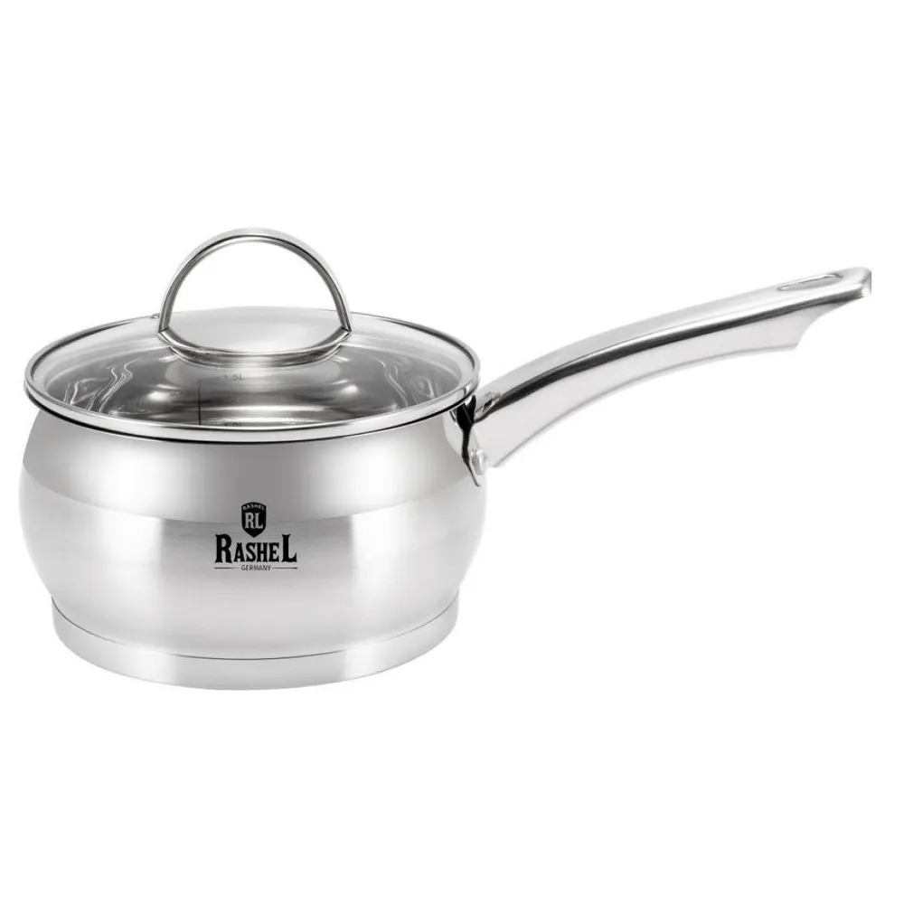 Ковш кухонный 2,1л из серии Катрин ТМ Rashel выполнен из экологичной высококачественной нержавеющей стали 18/10, устойчивой к коррозии. В комплекте стеклянная жаропрочная термостойкая крышка, которая имеет отверстие для отвода пара и удобная металлическая ручка.