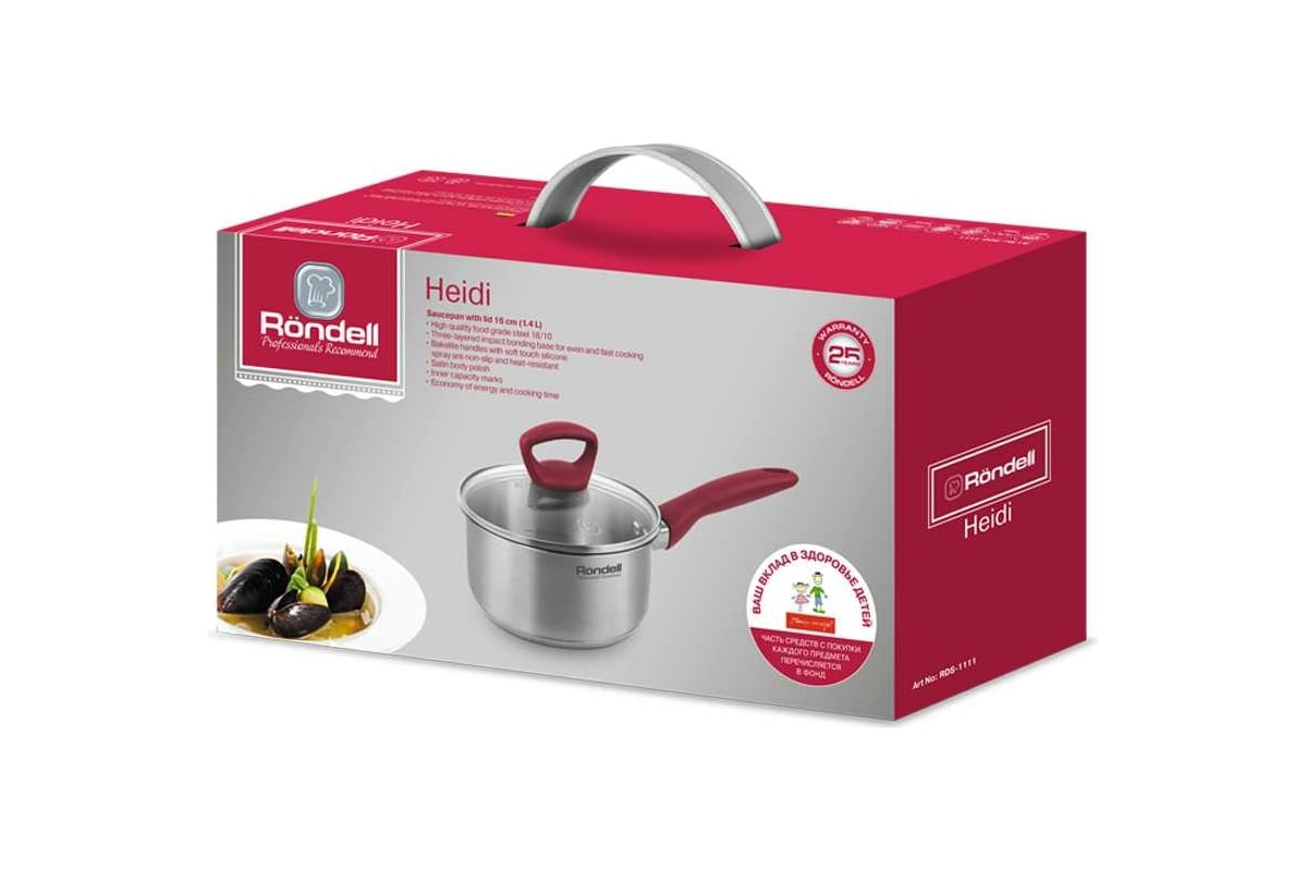 Ковш RONDELL Heidi с крышкой 16 см 1.4 л RDS-1111 предназначен для приготовления пищи.