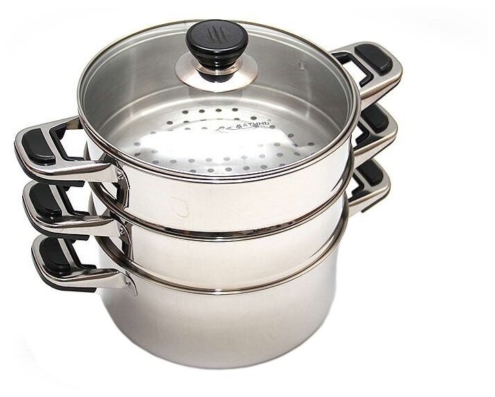 материал крышки: стекло; материал ручек: пластик; общий объем мантоварки 12,7 л