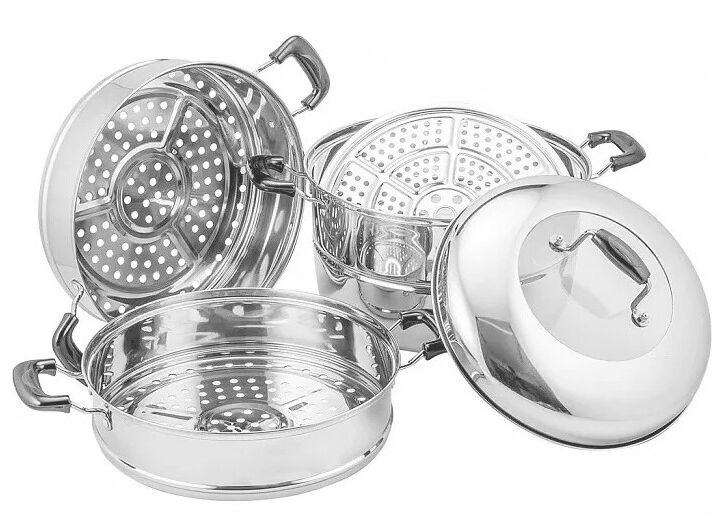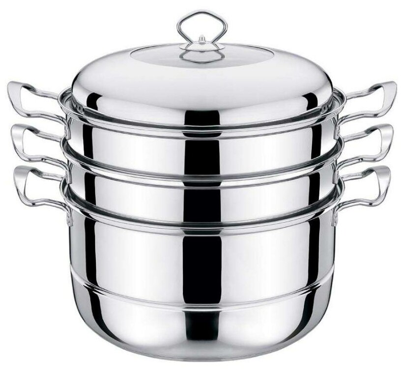 многослойное дно; материал крышки: сталь; 3 яруса