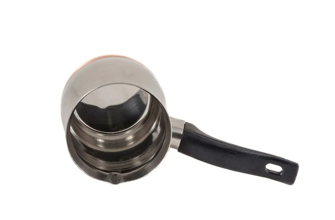 Кофеварка стальная с медным дном 650 мл, модель CW-650C (турка) предназначена для заваривания молотого кофе по-турецки( по-восточному). Чтобы готовить бодрящий напиток по всем правилам, нужна хорошая турка для кофе. Кофе, сваренный в турке, отличается насыщенным вкусом и содержанием нерастворимых частиц (гущи). В напитке остаются почти все вещества, которые содержатся в обжаренном кофейном зерне.
