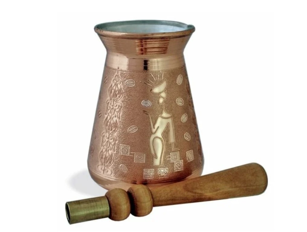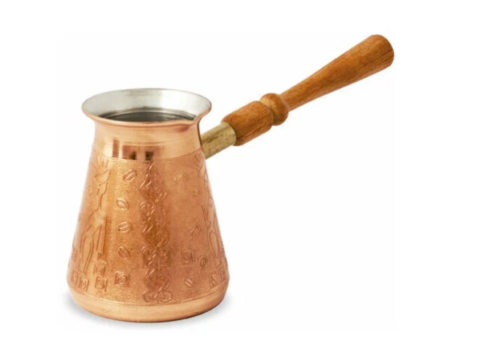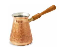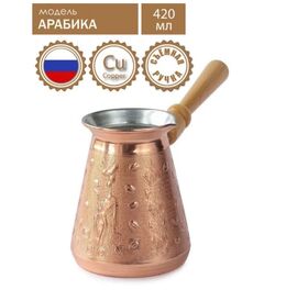 Турка "Арабика" торговой марки «TimA» изготавливается из цельного листа высококачественной меди. Внутренняя поверхность турки покрыта пищевым оловом. Высокая теплопроводность меди позволяет турке равномерно нагреваться, что очень важно для приготовления настоящего, вкусного кофе. Внешняя поверхность, защищена лаком, изготовленным по уникальной технологии и имеющим натуральный цвет меди. Благодаря этому турка не обгорает и легко моется. Предназначена для приготовления на газовой или электрической (стеклокерамической) плите.