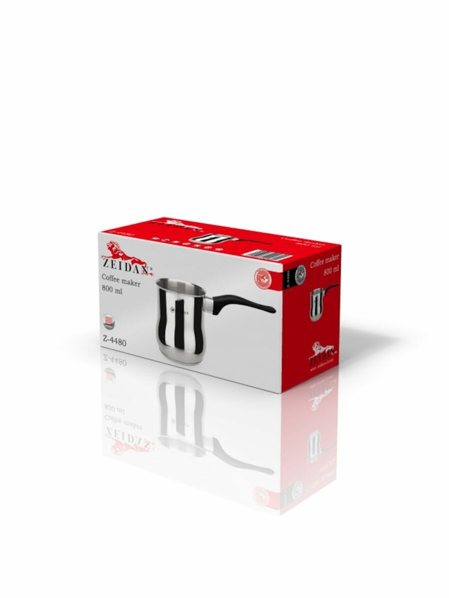 Турка Zeidan Z-4480, объемом - 800 мл, нержавеющая сталь, капсулированное индукционное дно, зеркальная полировка снаружи, матовая полировка внутри, фиксированная ручка. Подарочная упаковка.