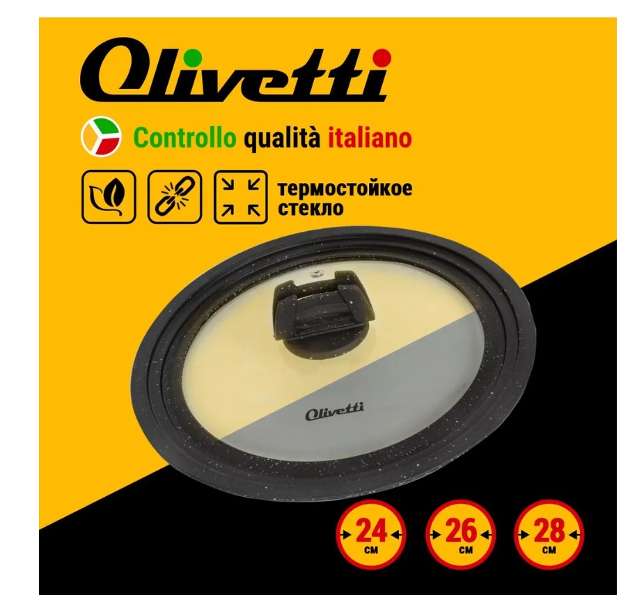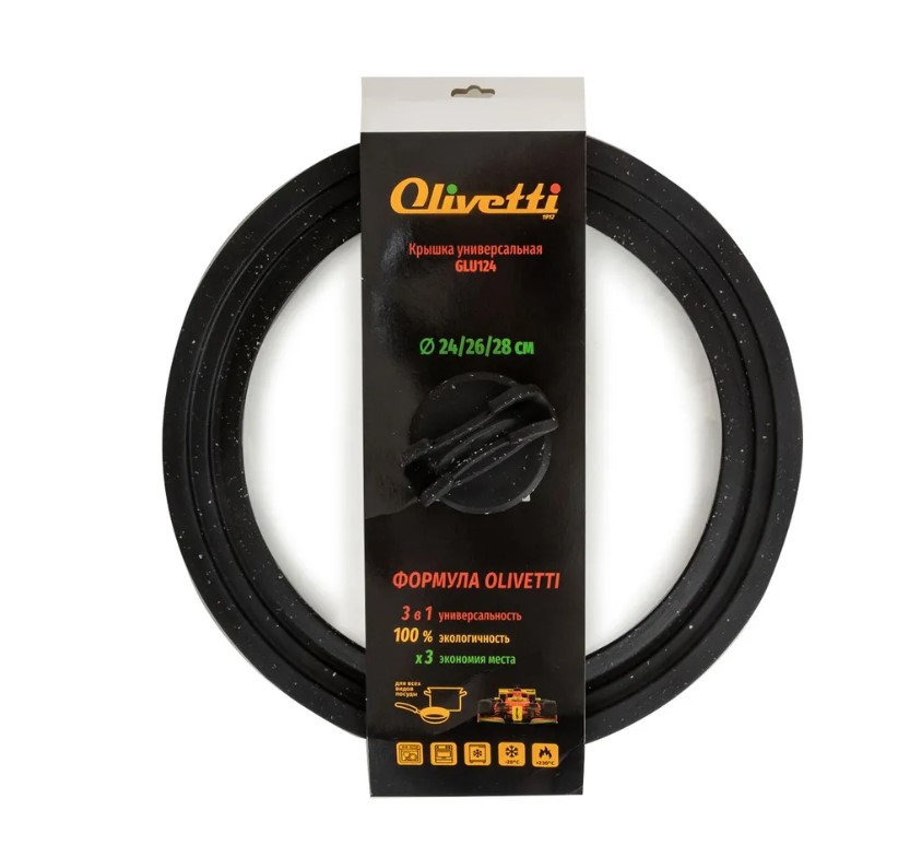 Крышка универсальная Olivetti выполнена из термостойкого стекла и экологичного силиконового кольца под три размера посуды. Подходит к любой кастрюле или сковороде диаметром 24-26-28 см. Ее можно использовать не только во время приготовления на плите, но и так же в духовых шкафах, ведь она выдержит высокие температурные режимы. Ручка не нагревается и не скользит во время приготовления, силиконовый ободок предотвращает образование царапин на посуде. Вы сможете следить за процессом приготовления без потери тепла за счет прозрачной крышки.
