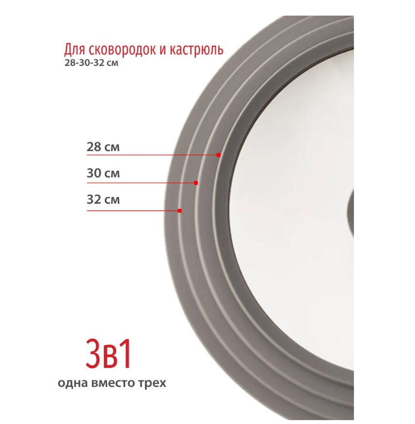 Крышка универсальная Olivetti выполнена из термостойкого стекла и экологичного силиконового кольца под три размера посуды. Подходит к любой кастрюле или сковороде диаметром 28-30-32 см. Ее можно использовать не только во время приготовления на плите, но и так же в духовых шкафах, ведь она выдержит высокие температурные режимы. Ручка не нагревается и не скользит во время приготовления, силиконовый ободок предотвращает образование царапин на посуде. Вы сможете следить за процессом приготовления без потери тепла за счет прозрачной крышки.