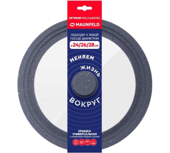 Подходит для кастрюль и сковородок с диаметром 24/26/28 см. Прозрачная стеклянная крышка позволяет наблюдать за готовностью пищи, не открывая посуду, тем самым, исключая попадания брызг на кожу и одежду.