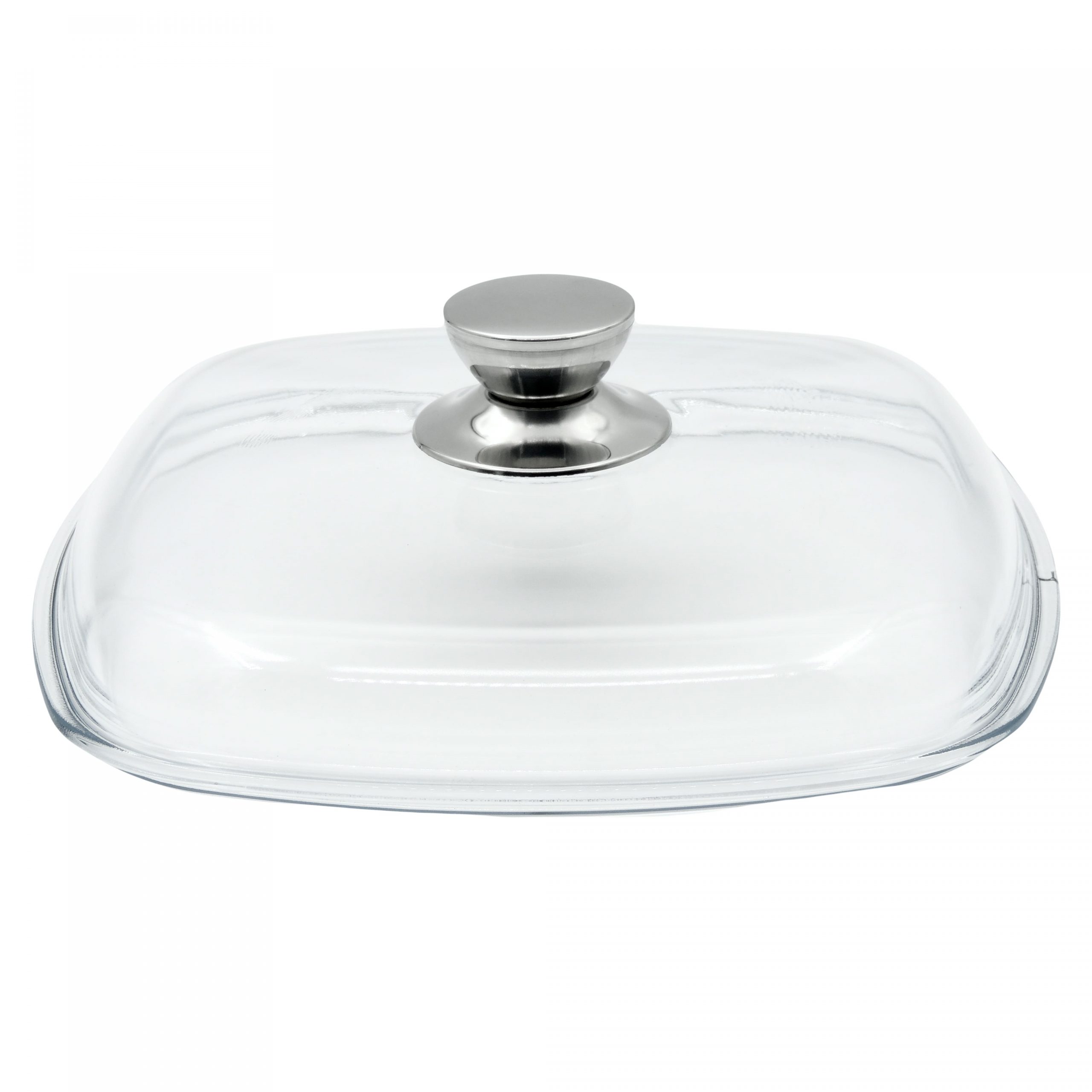 Квадратные крышки изготовлены из боросиликатного стекла, благодаря чему выдерживают высокие перепады температур и устойчивы к повреждениям. Металлическая ручка сильно не нагревается во время готовки, а также обеспечивает крепкое сцепление с крышкой. К главным особенностям данной крышки можно отнести возможность использовать ее в:
