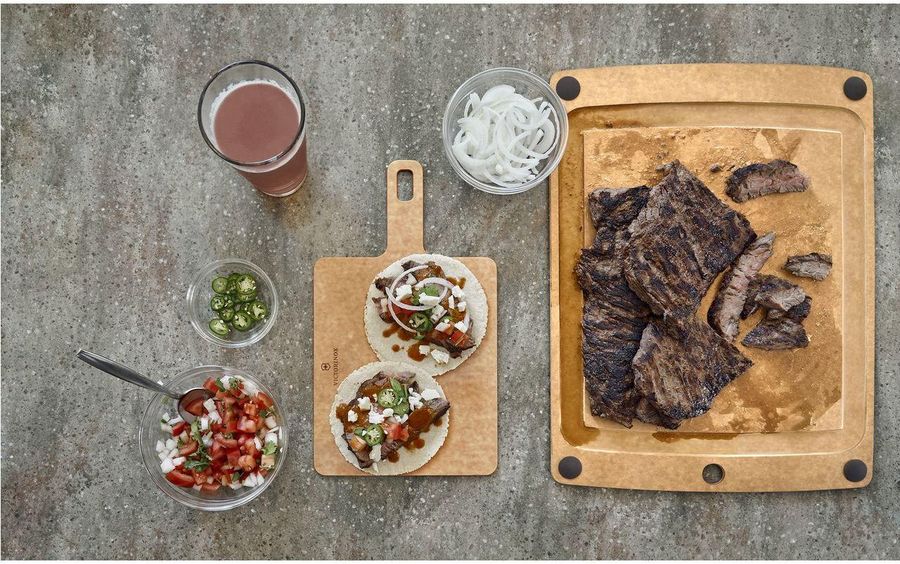 Эта разделочная доска, изготовленная из бумажного композитного материала, элегантна и тонка, но при этом очень прочна. Благодаря удобной для лезвия поверхности и термостойкости до 175 ° C / 350 ° F он будет использоваться от измельчения во время приготовления еды до подачи во время ужина.
