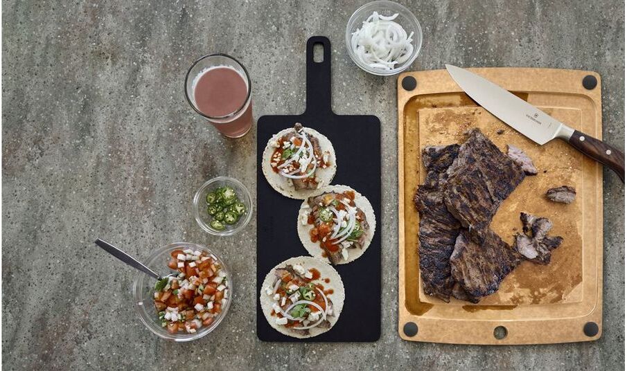 Эта разделочная доска, изготовленная из бумажного композитного материала, элегантна и тонка, но при этом очень прочна. Благодаря удобной для лезвия поверхности и термостойкости до 175 ° C / 350 ° F он будет использоваться от измельчения во время приготовления еды до подачи во время ужина.