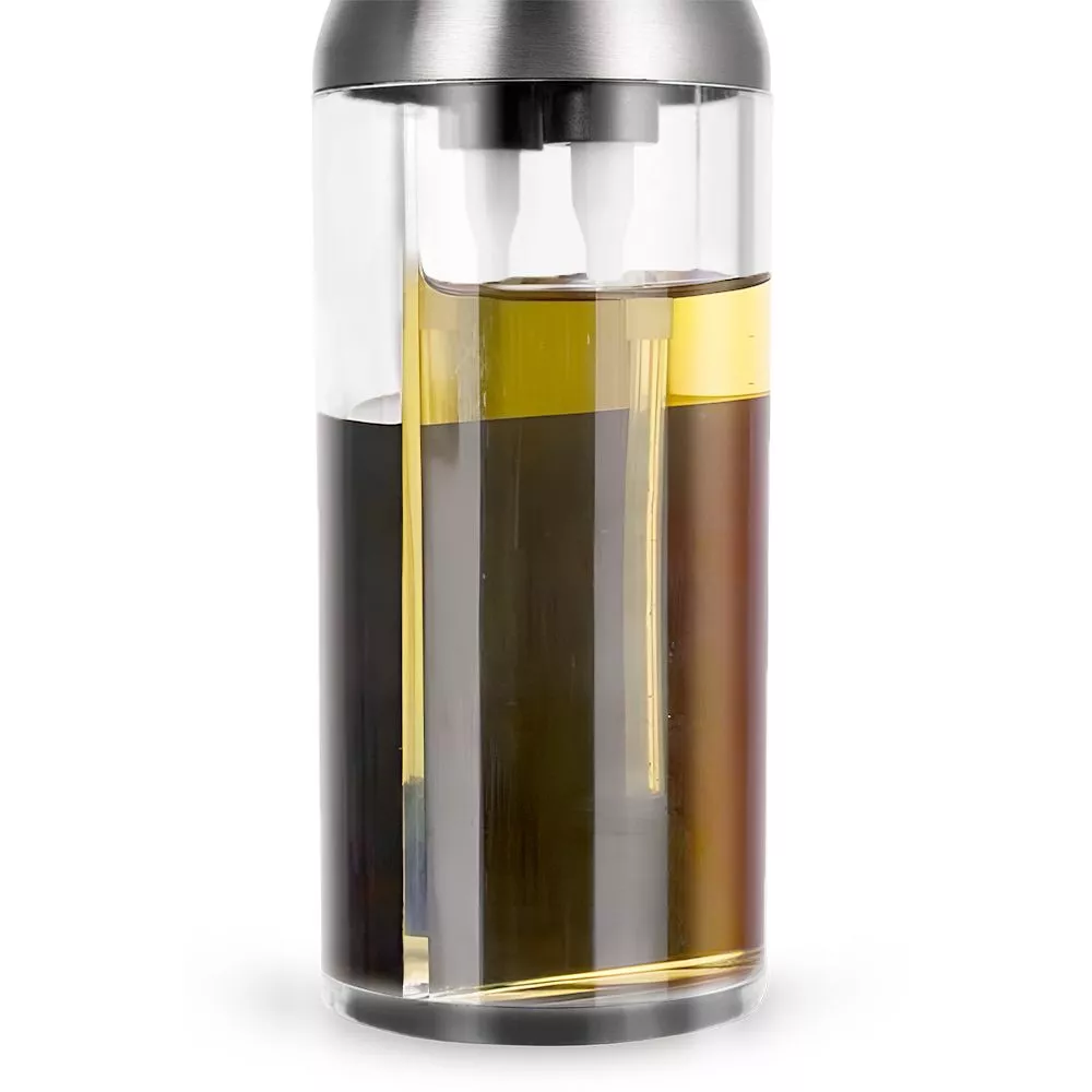 Корпус разделен на два резервуара, что позволит сэкономить место на кухне. Благодаря такой конструкции вы можете добавлять масло и уксус в блюдо одновременно, смешивая их. Вы можете настроить количество масла и уксуса, которое хотите смешать.