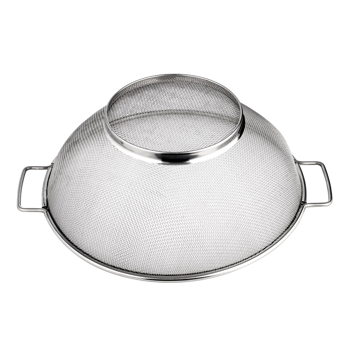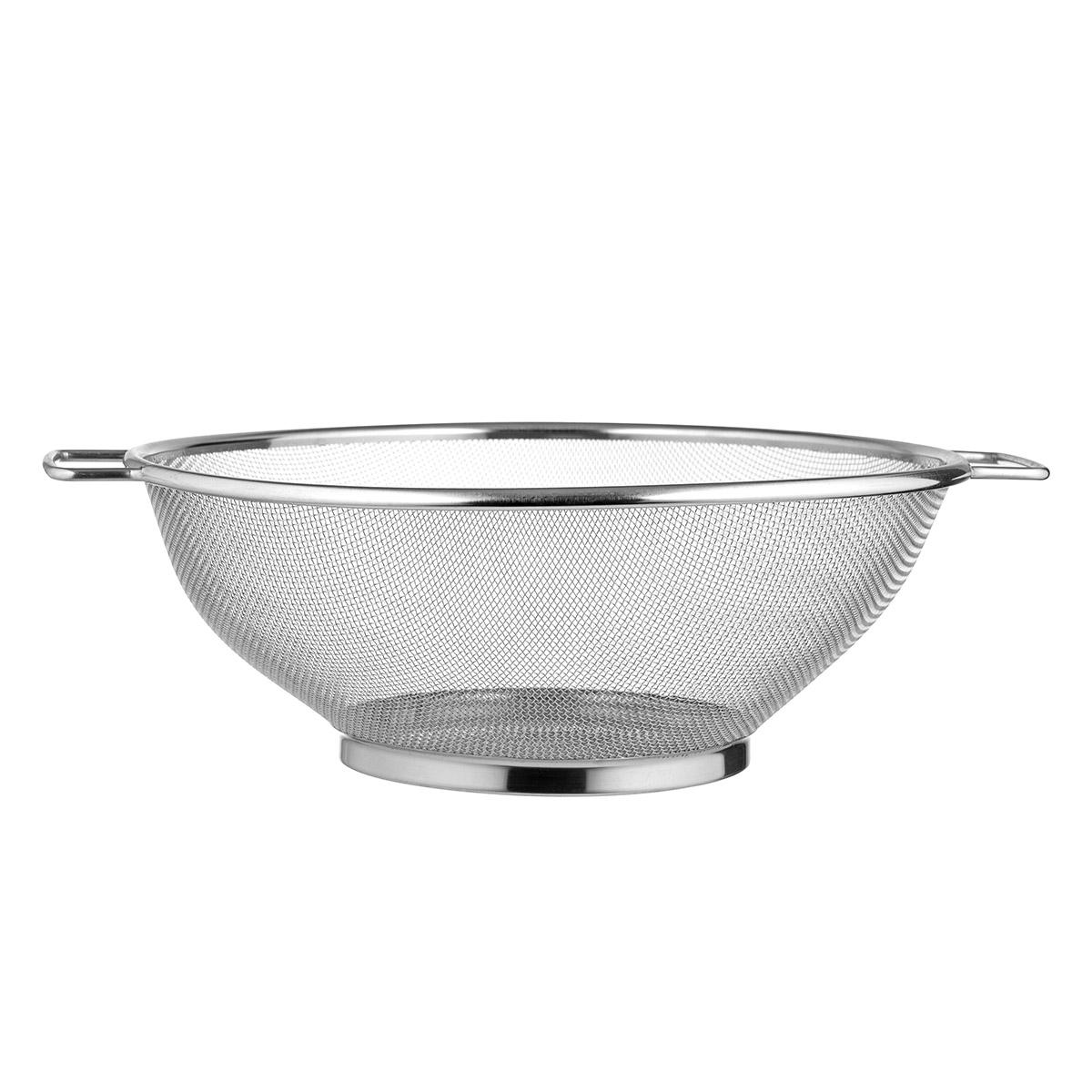 Удобный в использовании дуршлаг LARA LR03-51 идеально подойдет для сливания жидкости с отварных продуктов, процеживания бульона и мытья ягод. Изделие с двумя ручками удобно держать и встряхивать, также вы можете опереть дуршлаг на емкость. Устойчивое основание позволяет ставить его на ровную поверхность. Высокие сетчатые бортики не дадут выпасть продуктам. Дуршлаг выполнен из высококачественной нержавеющей стали. Диаметр изделия: 26 см.