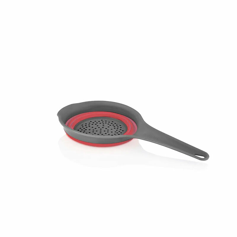 Дуршлаг складной круглый с ручкой, выполнен из прочных и качественных материалов: термопластичный пищевой силикон. С помощью него можно слить воду после варки или мытья овощей, фруктов и ягод.
