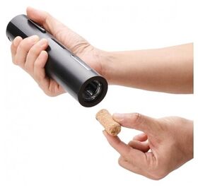 в комплекте: электрический штопор - 1 шт., нож для фольги - 1 шт., аэратор - 1 шт., пробка для вина - 2 шт., подставка; источник питания: батарейки АА (4 шт.); скорость открытия бутылки: 8 сек; совместимость для пробок диаметром 20-25 мм, бутылки наружным диаметром не более 35 мм