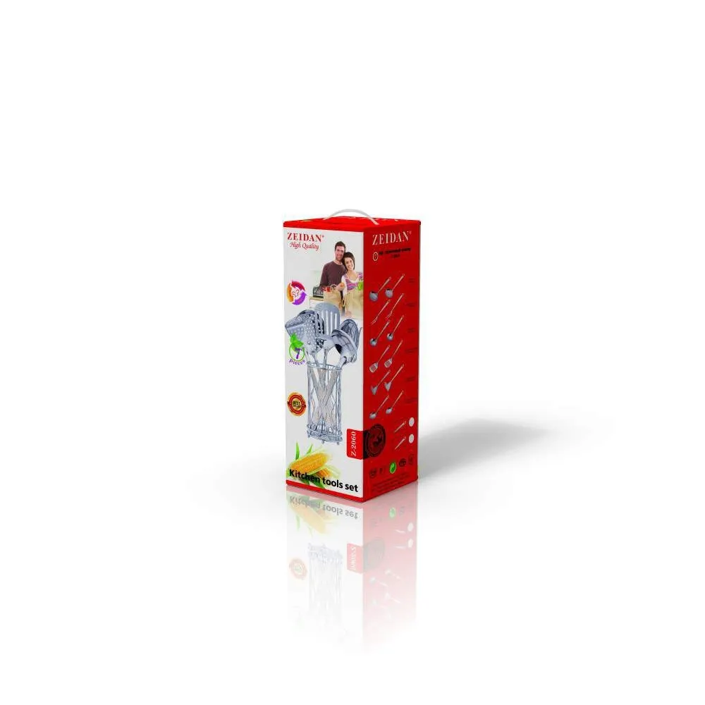 Комплектация: лопатка с прорезями, шумовка, половник, картофелемялка, поварская ложка, поварская вилка, коробка