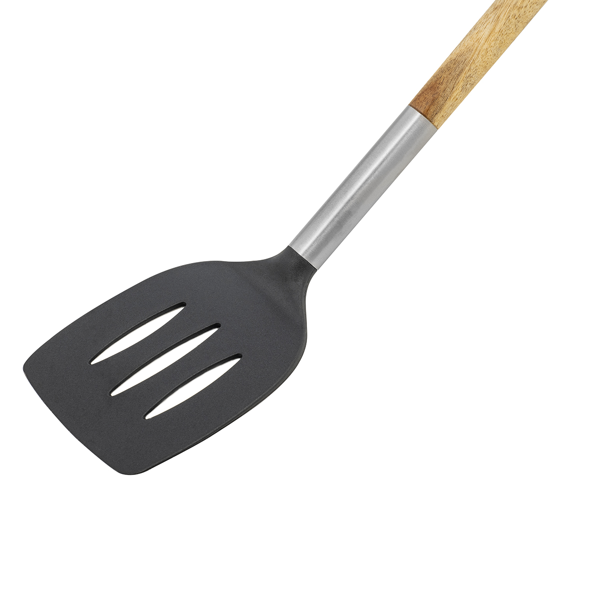 Кухонные аксессуары давно стали не только инструментом, но и предметом интерьера. Приборы данной серии сочетают в себе практичность и красоту древесины акации. Гигиеничность используемого нейлона соответствует американским стандартам FDA. Переходной патрубок из нержавеющей стали 18/0. Все части изделия тщательно подогнаны и закреплены. Имеется отверстие для подвешивания.