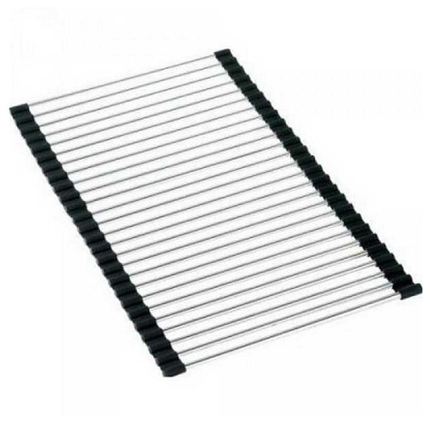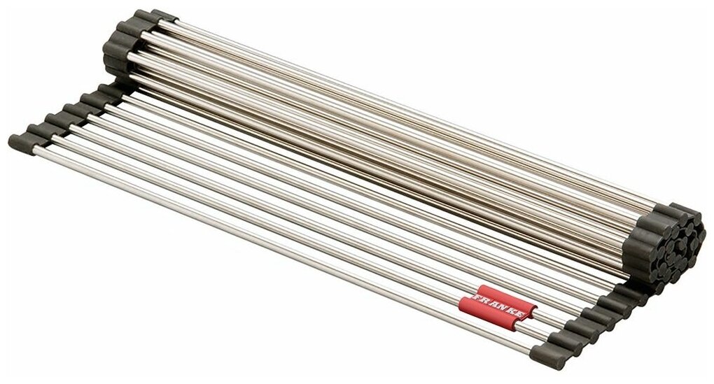 Ролл-мат (112.0256.867) из высокопрочной нержавеющей стали с рифленой поверхностью – это полезный аксессуар для мойки, исполняющий функцию сушилки. Атрибут крепится к крылу мойки.