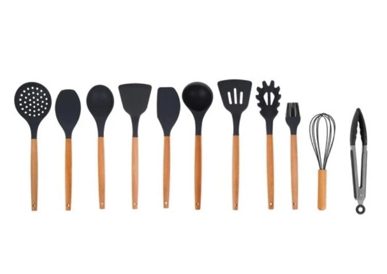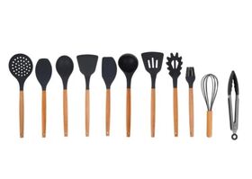 В набор входят 11 самых необходимых аксессуаров для кухни и подставка: