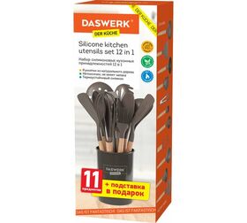 Стильный и функциональный набор кухонных принадлежностей на подставке, который будет отлично смотреться на кухне. Это незаменимый помощник для каждой хозяйки, который безопасен для здоровья и практичен в использовании.