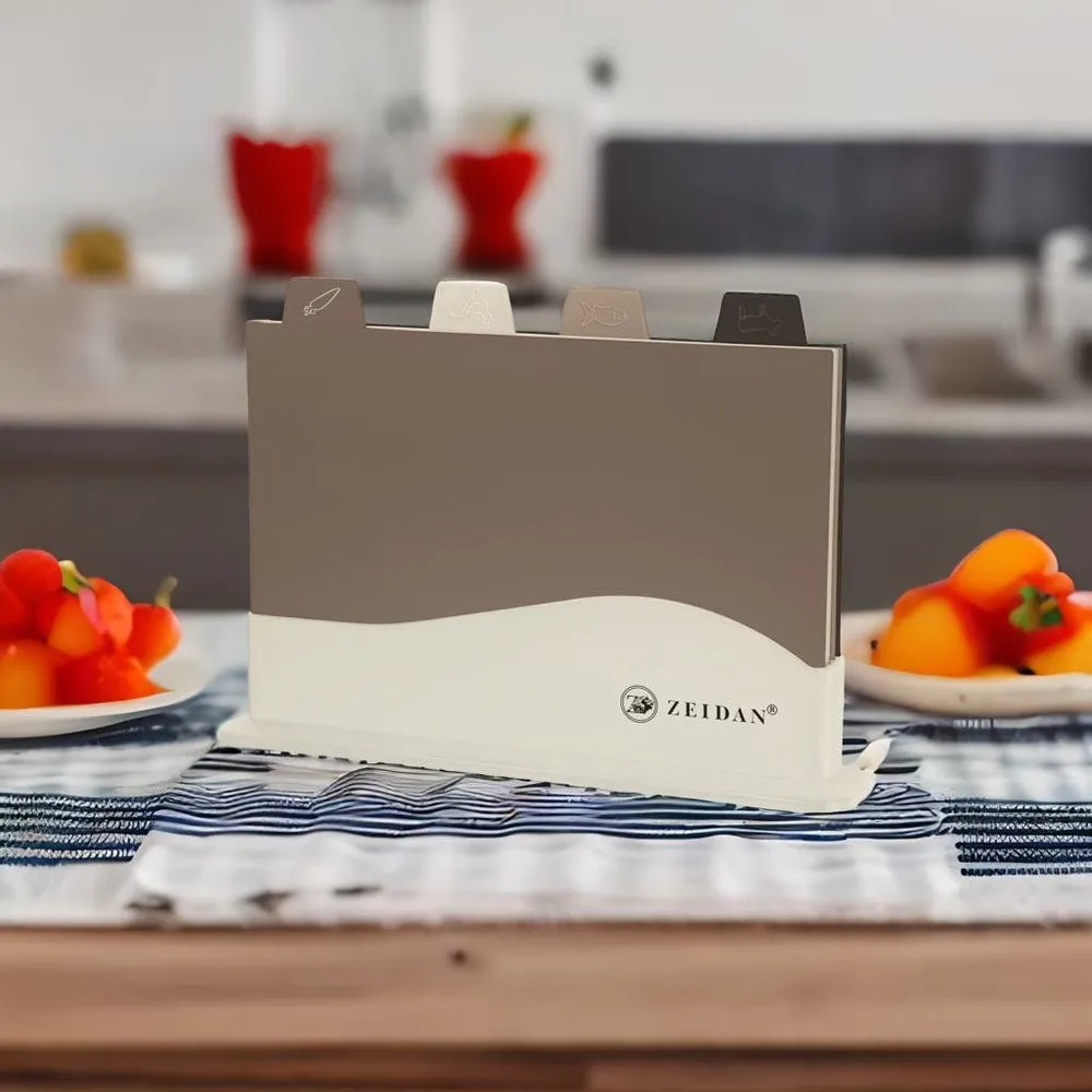 Комплект - 5 разделочные доски + подставка. Все доски размером 30х19,8 см в наборе обладают максимально комфортными ручками, а прорезиненные углы позволяют не скользить по поверхности стола. Доски можно использовать с двух сторон,каждая сторона разделочной доски получила специальное покрытие, которое не притупляет ножи. Разделочные доски выполнены из экологически чистого, высокопрочного полипропилена, не деревянные, поэтому не впитывают запахи и еда будет без посторонних привкусов, защитят стол, столешницу, посуду от повреждений. Доска для кухни антискользящая удобна в эксплуатации, разрешено мыть в посудомойке или с помощью губки. Для компактного хранения досок предусмотрена удобная подставка. Доска предназначена для каждого вида продукта в соответствии с ярлыком: доска для мяса, разделки рыбы, шинковки овощей, красиво нарезать фрукты хлеб масло сыр и подать как на тарелке не используя менажницу. Это отличный подарок!