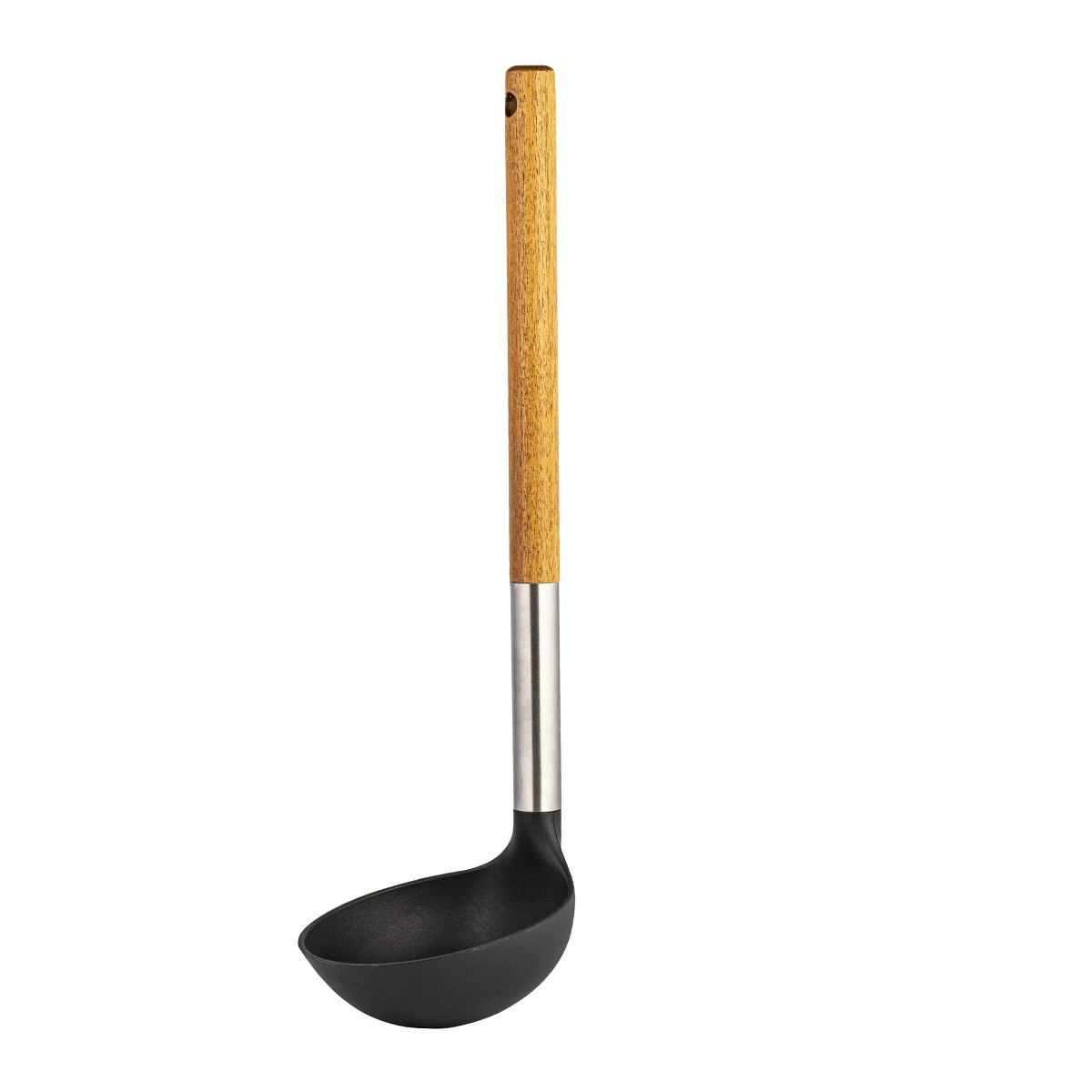 Кухонные аксессуары давно стали не только инструментом, но и предметом интерьера. Приборы данной серии сочетают в себе практичность и красоту древесины акации. Гигиеничность используемого нейлона соответствует американским стандартам FDA. Переходной патрубок из нержавеющей стали 18/0. Все части изделия тщательно подогнаны и закреплены. Имеется отверстие для подвешивания.